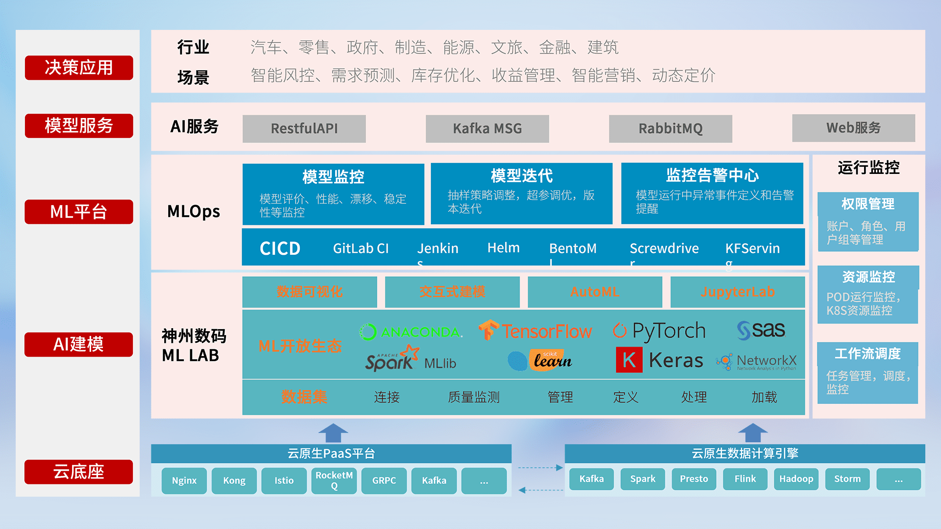 数据+模型双引擎驱动,,,,面向智能服务场景,,快速灵活利用AI技术,,,,支持业务决策,,助力企业智能化转型破局。。